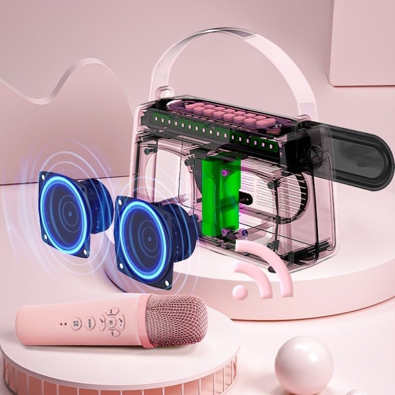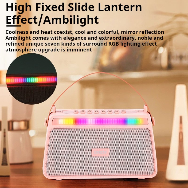 Highlights | 1.Ultra-long 10H range direct broadcast bluetooth karaoke audio 2. Function, sound quality, value of the three major upgrades, both inside and outside 3. Built-in sound card chip without damage to the internal recording output live 4. High-frequency is a reflection of the details of the sound, heavily upgraded 20-watt 66MM dual-magnet speakers to bring rich sound details, hear the teeth, a variety of musical instruments sound as if you were on the spot! 5. Built-in 4-core DSP chip intelligent beauty sound effects, no noise, no call, no breaks to enhance the sound permeability and sense of hierarchy, bringing high-quality audio-visual experience. 6. Using Bluetooth V5.0 version module, faster transmission, lower power consumption, stronger anti-interference ability, simple connection, free playback. 7.3600MAH polymer lithium battery, battery life increased, a charge can bring about 10 hours of music playback 8.Fully compatible with all kinds of APP/devices